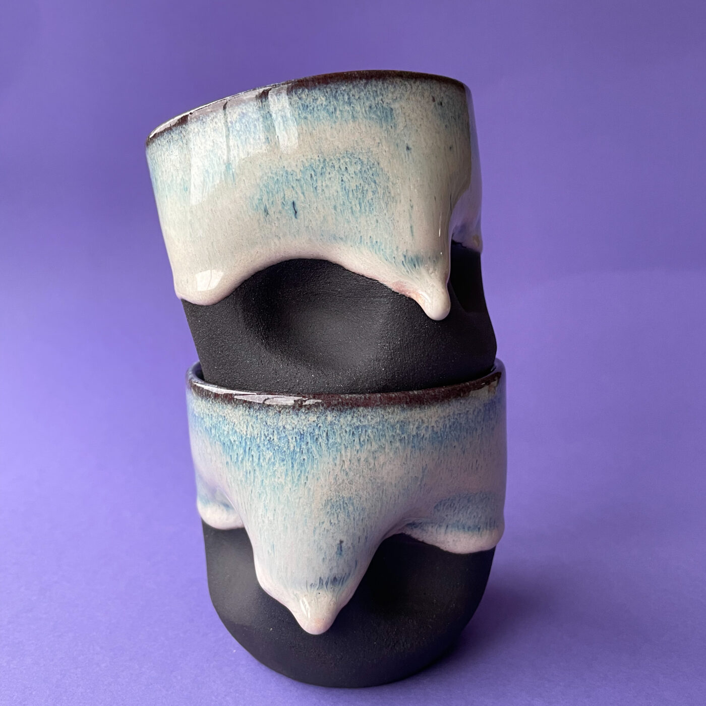 Czarka została wytoczona na kole garncarskim z czarnej gliny.