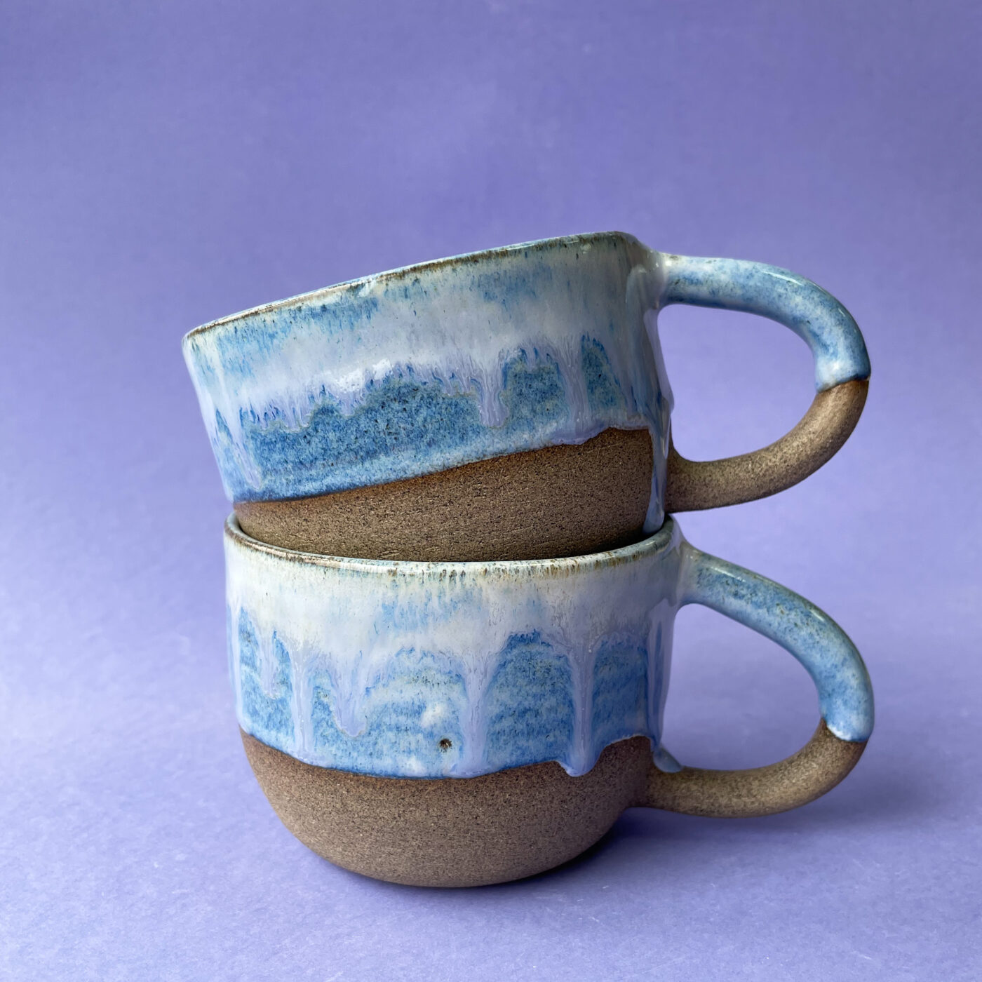 Kubek został wytoczony na kole garncarskim z szarej kamionki z ciemnym szamotem.